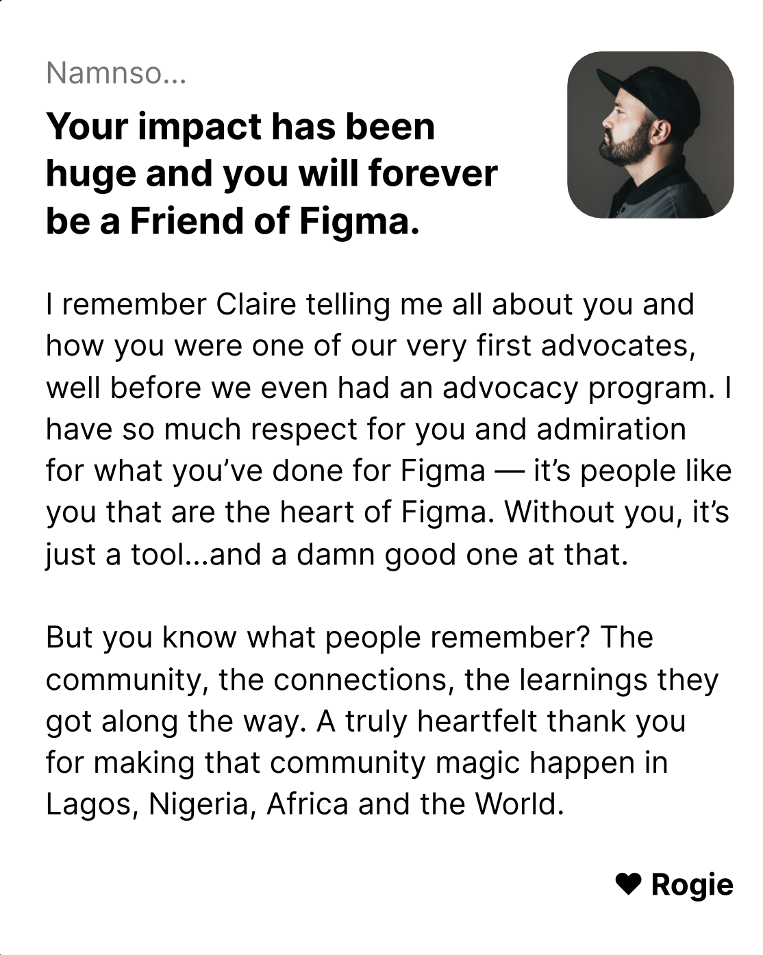 I partnered with Figma to change that. What began as a single meetup in Lagos, Nigeria became Friends of Figma Africa with groups across 26 cities in 11 countries, driving continuous learning, mentorship, and career advancement opportunities.